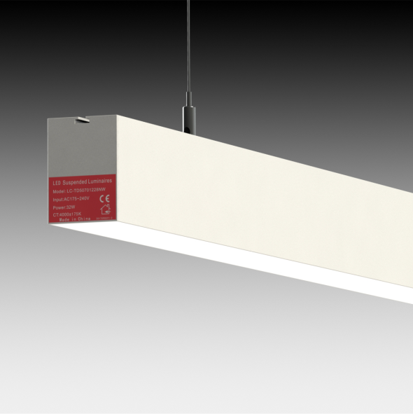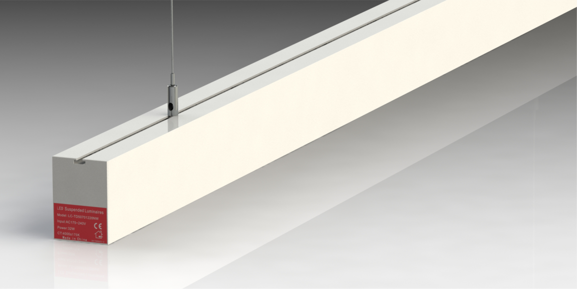 Suspend mounted linear LED luminarie, housing made of high pressure extruded aluminum construction, die-cast aluminum end caps with no visible screws, Surface treatment is the sand oxidation and Flame retardant PC honeycomb grille mask,UV and corrosion resistance, with beautiful appearance, the scientific proportion and reasonable dimensions, flexible installing methods, light body, excellent heat dissipation. The luminarie combined with the concept of indirect/direct lighting distributions, applying anti-glare diffuser and double transmission principle of secondary reflection, Flame-retardant PC honeycomb grille, without visible dark spot or light gaps in seamless continuous lighting system. Advanced thermal management technology to ensure consistency of LED life span, color temperature and maximize output lumens.